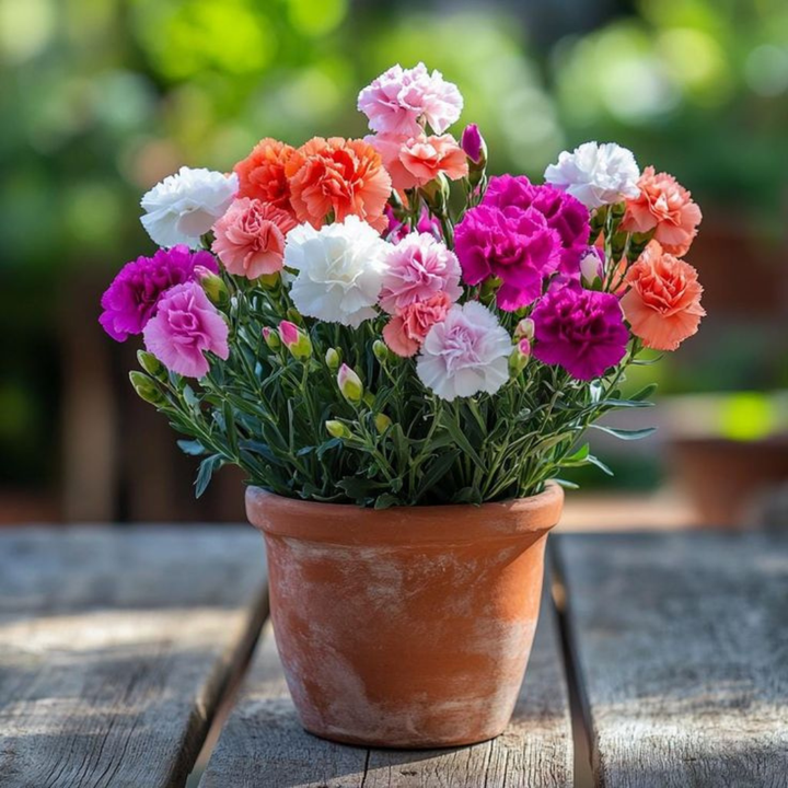The Chabaud carnation (Dianthus caryophyllus var. Chabaud) is a classic, fragrant French heirloom prized for its vibrant, ruffled double blooms and sturdy stems. These carnations are commonly grown as annuals or tender perennials, perfect for cutting gardens, borders, and containers. They are known for a sweet, spicy scent, often described as clove-like.