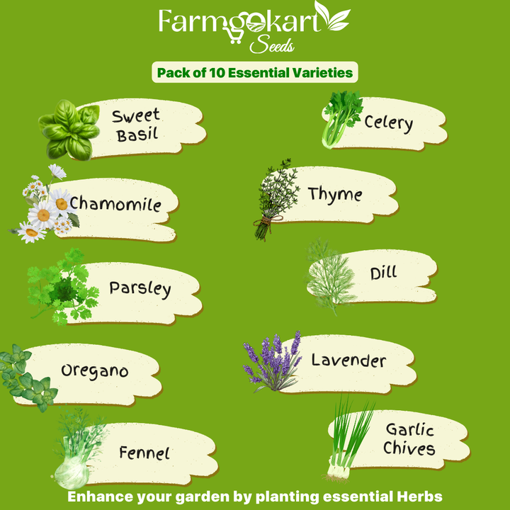 Pack of 10-variety Essentail Herbs Seeds combo pack for Home Gardening | Grow your own Herbs
