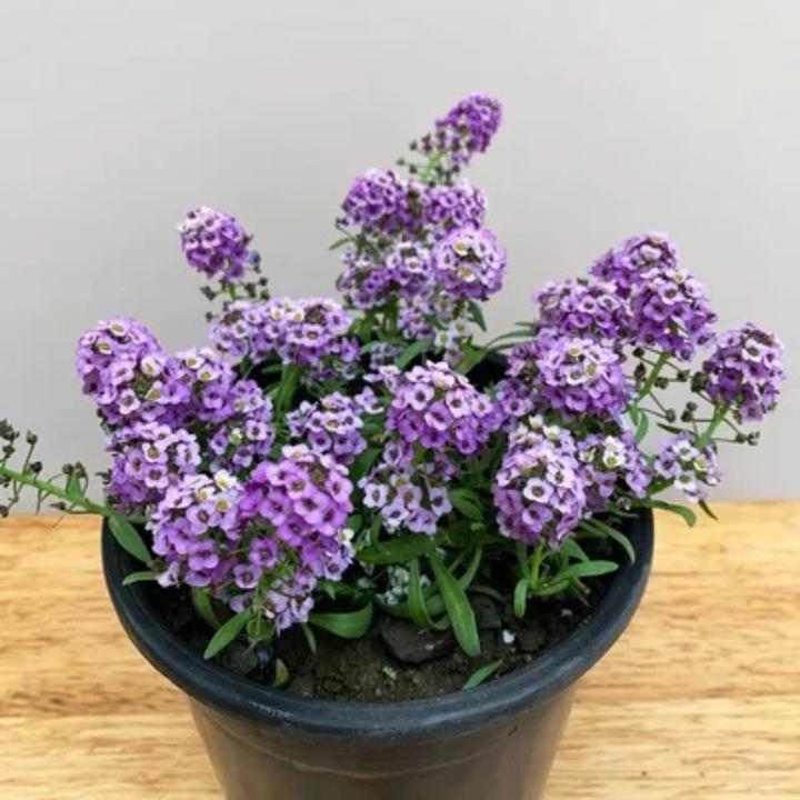 Alyssum maritimum 'Royal Carpet Blue' is a low-growing, mat-forming annual flower known for its rich, violet-blue blossoms and sweet, honey-like fragrance. It is a popular garden plant, perfect for creating a lush, colorful groundcover effect.